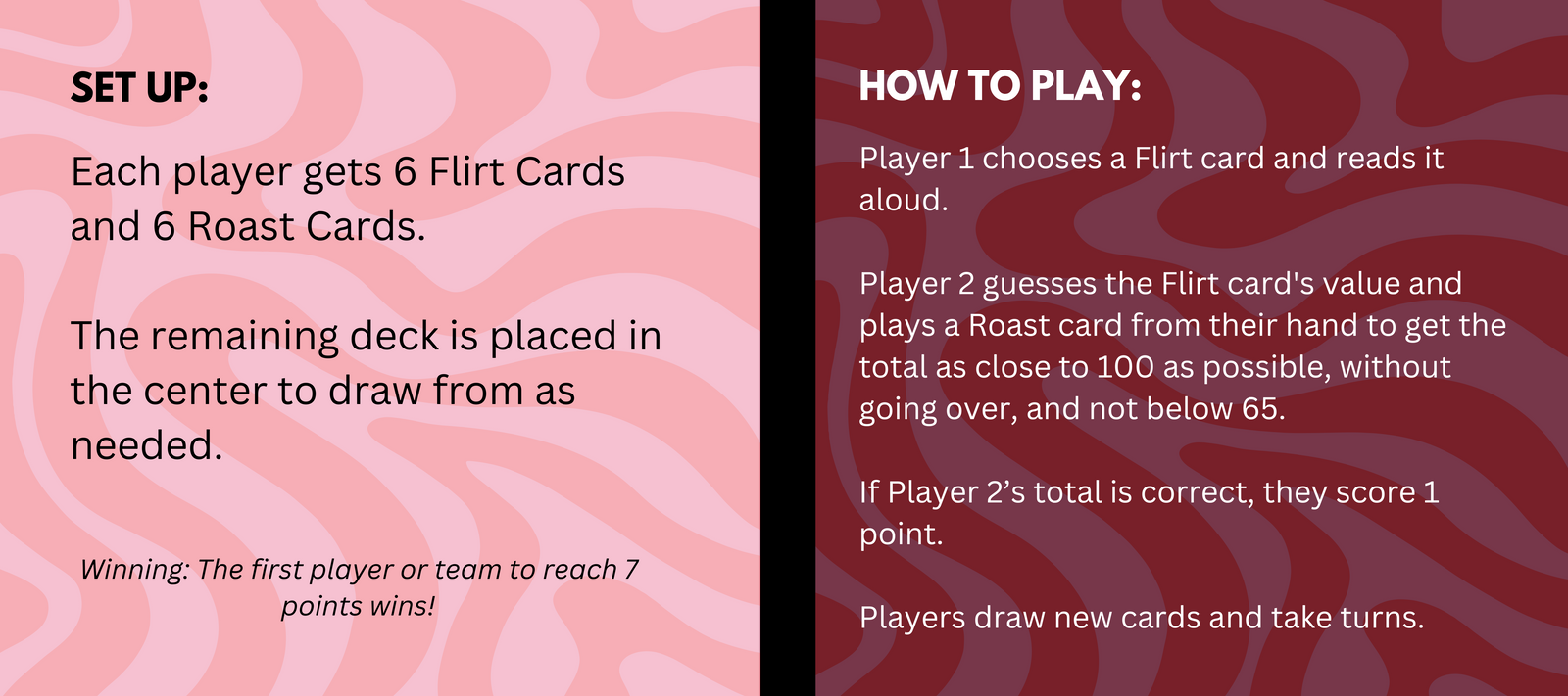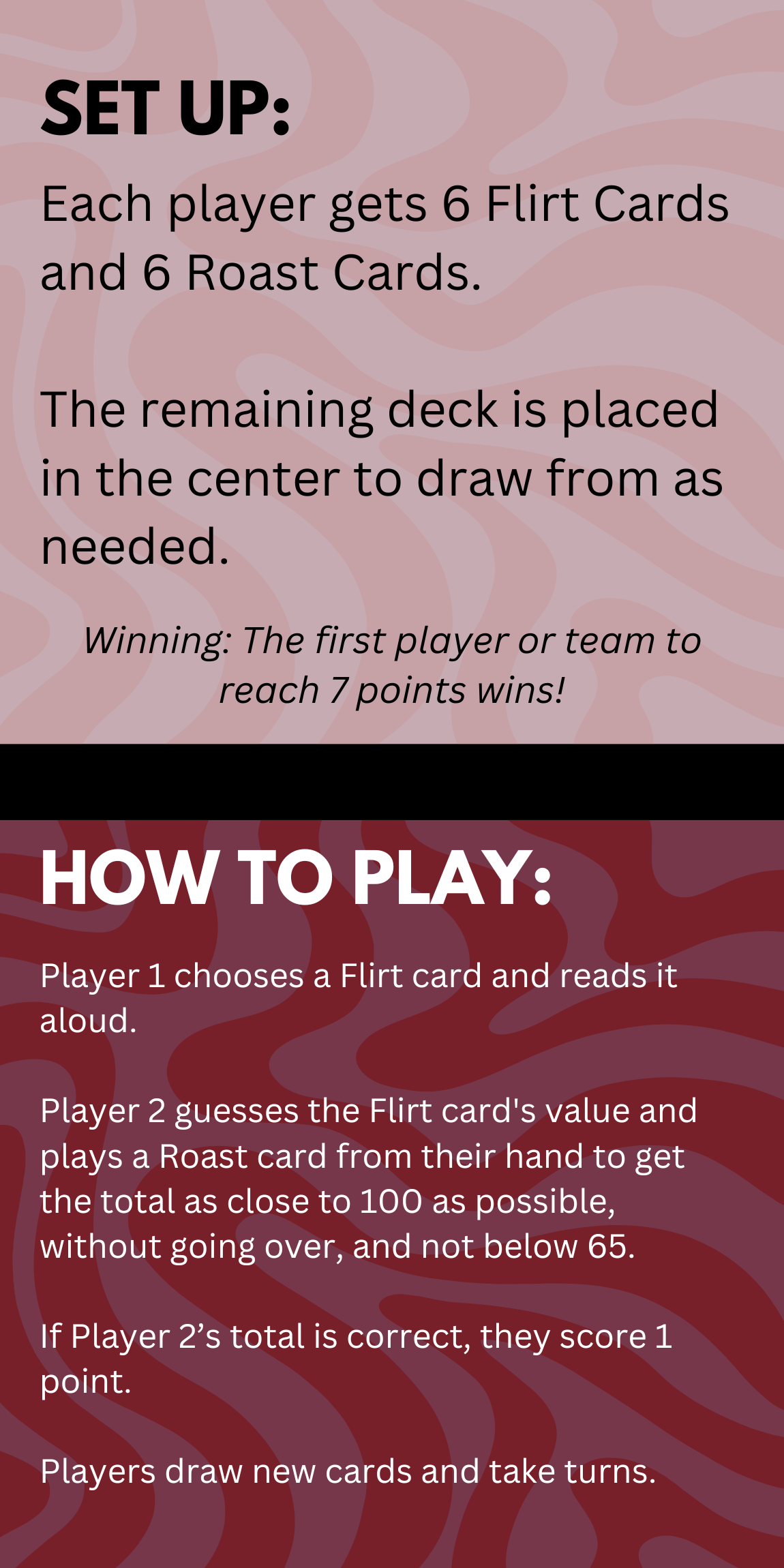 π How to Win: Whoever is closest to 100 without going over, wins.. and low key probably has an impeccable flirt game.